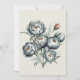 Um buquê meticulosamente ilustrado. As flores são predominantemente em tons de verde e cinza, com detalhes complexos destacando suas pétalas e estames. Há um botão vermelho distinto em um dos caules, contrastando lindamente com os tons legal do resto. As folhas e caules são representados com tons de verde variados, dando profundidade e dimensão à composição. Todo o arranjo é colocado sobre um fundo branco-glaciar, permitindo que as cores das flores sejam pop e os detalhes sejam visíveis.