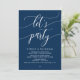 Bela Caligrafia Moderna em Azul Marinho, Anúncio de Casamento Íntimo, cartão de convite (Vamos festejar). Isso é perfeito para o seu casamento e festa de celebração pós-casamento. Adicione seus detalhes na fonte / letra correspondente. #TeeshaDerrick