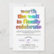 Convite de casamento sequência Orgulho com um charmoso design de tipografia arco-íris. Adicione uma foto do casamento dos dois no verso para mostrar o seu dia de casamento. Gay Vale a pena esperar para finalmente celebrar o convite de casamento com um design de tipografia divertido e texto informal de casamento. Cartão de anúncio de casamento lésbico com um convite de celebração pós-fuga. Convite de celebração de fuga LGBT personalizado com uma foto do casamento.