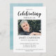 Convide amigos e família para compartilhar suas histórias e memórias favoritas com esta elegante celebração azul de aquarela do convite à vida. Também disponível na orientação horizontal.