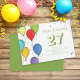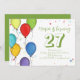 Convite de balões de aniversário. Para crianças, adultos, ou o aniversário de qualquer ano. Contornos modernos e balões podem ser usados para convites de festas surpreendentes ou qualquer festa. Um começo divertido para a sua comemoração da festa de aniversário. Esta design apresenta uma festa de aniversário simples, bonita, colorida, confete de balão com texto brilhante, trendy na moda calliógrafo, estilo design, tipografia caprichosa, celebração festiva, festa, vermelho azul verde roxo, minimalista convite de aniversário, convite para festas de balões confetti, crianças adultas de qualquer idade, adorável convite verde e simplista trabalho de arte por laura lacina