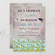 Este convite para a graduação em fundo rústico das flores aquáticas azuis está pronto para você personalizar. É para uma celebração de segundo grau ou formandos. Teal e elegante inscrição azul num fundo rústico roxo, rosa e rústico. Adicione a versão digital para enviar aos seus amigos e entes queridos nas redes sociais!
