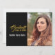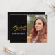 Este elegante design de convite para a graduação em preto, ouro e branco apresenta uma fotografia e texto de marcador na frente. A parte traseira nas mesmas cores de texto contém os detalhes da parte. Preencha os campos de texto com os detalhes para frente e verso, remova informações indesejadas e/ou clique em personalizar para selecionar um estilo de tipo, tamanho e cor preferidos. Uma fotografia em formato vertical funciona melhor para substituir a fotografia do espaço reservado.