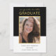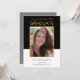 Comemore o formando com esse anúncio de graduação em estilo contemporâneo, que também serve como convite de festas. A frente do convite apresenta um fundo de bloco de cor preto e branco com um quadro fino de ouro ao redor do seu retrato vertical. Um modelo de texto em uma face moderna e nítida está pronto para personalizar com o nome do formando, o ano de aula e a escola. Carregue a foto desejada no lugar da foto de exemplo mostrada nesta placa. A parte traseira da placa tem um modelo de texto de convite de festas para personalizar com os detalhes do evento. Esta design versátil e neutra do ponto de vista do gênero funciona bem para qualquer formando do segundo grau, universidade ou universidade.