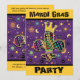 design original da Fat Terça-feira, um Fleur de lis cheio de miçangas vestindo uma coroa, em presentes, roupa, cartas, convites, decoração doméstica e favoritos para festas para o Krewe quando você tem vontade de celebrar no estilo NOLA. Você pode personalizar com sua própria mensagem e texto, mudar as cores de fundo ou posicionamento de imagem para uma celebração Mardi Gras projetada personalizada.