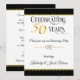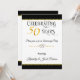 Comece sua festa de aniversário com o pé direito com nosso convite de celebração de casamento de 50 anos dourado, com um convite impressionante em fundo branco e preto com corações duplos dourados.