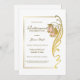 Um elegante convite para comemoração de aposentadoria, enquadrado em ouro, com um quadro de ouro ornamentado, embelezado em ouro, com flores cor-de-rosa pinceladas, como parte do quadro. O texto é facilmente personalizado para que você adicione seus próprios detalhes conforme necessário.