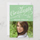 Texto branco rochoso, zunido e enrolado com "formando", e uma foto para anunciar a grande conquista. Câmbio e cursivo fantasioso com a palavra Celebrar nas costas. Copyright © www.CustomInvitesOnline.com