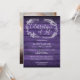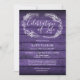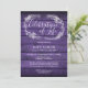 Um convite de celebração de vida elegante e rústico, com uma grinalda de folhagens desenhada à mão sobre um fundo de painéis de madeira roxa e uma foto especial no verso. Criado por Thisisnotme