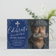 Descubra a dignidade elegante dos nossos convites de funeral e memorial personalizáveis. O fundo azul-marinho profundo define um tom contemplativo, delicadamente realçado pelos acentos prateados cintilantes. Uma foto pessoal do seu ente querido, combinada com o nosso modelo de texto personalizável, irá sublinhar cuidadosamente a celebração da sua vida. A cruz religiosa simboliza fé e esperança, apresentando uma homenagem radiante ao falecido. Personalize a cor se desejar - este convite é tão único quanto o indivíduo que você está lembrando.