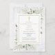 Um convite de celebração de vida personalizado em mármore elegante com folhagens de eucalipto em aquarela. Criado por Thisisnotme©