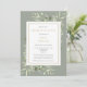 Um convite de lembrança de celebração de vida personalizado e elegante com folhagem botânica em aquarela em um fundo verde sage. Criado por Thisisnotme©