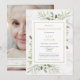 Um convite de celebração de vida com foto personalizada em aquarela com folhagens e mármore elegante moderno. Criado por Thisisnotme©