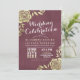 Celebração de Casamento Moderno / Modelos de Cartões Chás de panela - Rosas de Folha de Ouro Modernos e Fundo Vermelho Vintage Burgundy. Um Design perfeito para o seu grande dia. Todo estilo de texto, cores, tamanhos podem ser modificados para ajustado das suas necessidades.