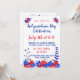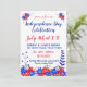 Celebração do Dia da Independência Convite design artístico moderno floral em branco vermelho e aquarelas azuis Combinação de scripts e fontes divertidas. O convite é uma peça central de coleção que inclui pratos de festas, guardanapos, banner, etiquetas de favor, caixas de presentes e guloseimas extras como presentes! A design é bela enquanto ainda é divertida, o que dá um bom humor para uma festa de excelente. Olhar limpo e agudo se destaca. Encontrar toda a coleção no Compro Zazzle: Florida_Girl PS... O design pode ser transferido para qualquer produto Zazzle.