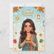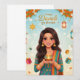 celebração do festival Diwali com mulher tradicional segurando lâmpada diya e caixas de presente