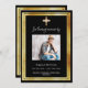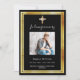 Um elegante, moderno, simples funeral/celebração do programa de vida. Um fundo preto clássico, decorado com uma cruz de ouro falsa, e quadros falsos de aspecto dourado. Personalize e adicione um nome de foto e detalhes. Texto branco.