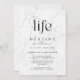 Uma bela e elegante falso celebração de mármore branco do convite e anúncio de funeral de vida. Mínima e elegante tipografia cardíaca "Celebração da Vida" com um simples fundo de mármore branco.