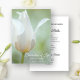 Convide os hóspedes a lembrarem-se do seu amado, depois de falecerem com a elegante Celebração do Primavera da Tulipa Branca do Convite Funeral da Vida. Este clássico tributo personalizado à morte floral apresenta uma fotografia floral pintada por uma coloração d'água de uma flor bonito de tulipa em tons de branco no caule com um fundo verde-esverdeado. Personalize-o com o nome, a data de nascimento e a data de morte. Ideia perfeita ou inspo ou um evento de março, abril ou maio na primavera. Disponível como convite impresso para envio e/ou como download digital para fácil compartilhamento digital online.