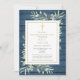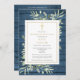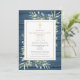 Uma celebração do convite de recordação de fotos da vida apresentando verde em um pano de fundo de madeira azul rústico. Projetado por Thisnotme©