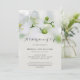 Convite para lembranças funerárias com uma natureza, orquídeas florais e brancas convidam a comemoração do modelo de vida que é fácil de personalizar. Flores elegantes, brancas e verdes design com texto preto de cinza.