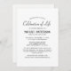 Um convite à memória do funeral minimalista, com um fundo branco moderno que pode ser mudado para qualquer cor, e uma celebração de modelo de vida que é fácil de personalizar.