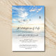 Convite à lembrança funerária que inclui uma praia celestial, oceano, natureza, foto de paisagem convidando a celebração de modelo de vida que é fácil de personalizar. Para redimensionar e posicionar sua foto, clique no botão "PERSONALIZAR TI".