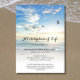 Convite à lembrança funerária que inclui uma praia celestial, oceano, natureza, foto de paisagem convidando a celebração de modelo de vida que é fácil de personalizar.
