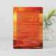 Linda Celebração da Vida 2 convite unilateral com texto totalmente personalizado em ambos os lados e apresentando uma imagem do oceano por pôr do sol em cores ousadas e românticas do sol de cenário. O lado frontal tem os detalhes do evento, o verso reserva um lugar para um poema ou citação favoritos. Isto coordena-se com a Coleção Horizontal do Oceano Solar.