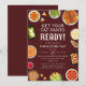 Reúna seus entes queridos por uma festa de Ação de Graças! Esta placa de convite para na moda apresenta um quadro que ilustra uma variedade de favoritos de Ação de Graças que regam a boca — peru, torta, purê de batatas e muito mais — em torno das palavras 'Prepare suas calças de gordura'.