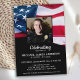 Bandeira Americana com Thin Blue Line Police Celebração do Life Memorial em um moderno design de bandeira Americana em cores de bandeira policial. Personalize esta comemoração do memorial policial do convite à vida com a foto, o nome e as datas e o sentimento do seu policial e os detalhes do evento. Esta celebração fúnebre polícia da vida será um tesouro. Perfeito para um funeral da polícia, funeral de polícia, comemoração policial ou comemoração da vida da polícia. No Memorial Memorial Memorial Memorial Thin Blue Line Flag. COPYRIGHT © 2020 Judy Burrows, Black Dog Art - Todos Os Direitos Reservados. Celebração Da Vida Patriótica EUA Bandeira Convite Memorial