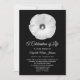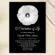 Esta encantadora celebração do convite à vida apresenta um lindo hibisco branco sobre um fundo negro. As palavras "Uma Celebração da Vida" aparecem abaixo da flor. Você pode personalizar esta design com o nome do seu amado, datas vividas e todas as celebrações importantes dos detalhes da vida. O verso do convite elogia a frente de um negro sólido. Uma design para celebrar uma vida adorável. Compaixão por direitos autorais