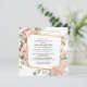 A celebração elegante de um convite de praça de vida apresenta um quadro geométrico dourado, decorado com rosas cor-de-rosa e folhas verdes no topo. O nome da pessoa morta está escrito em um texto tradicional. Todo o texto pode ser facilmente editado para criar uma lembrança pessoal.