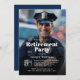 Este convite de festas de aposentadoria único para um policial ou primeiro respondente tem um modelo de foto para incluir uma foto favorita do convidado de honra. Para obter melhores resultados, use uma foto de orientação vertical. O texto modelo tem uma combinação de serif moderna e serif tipo face. Uma camada sombria sombria adiciona uma sombra sobre sua foto para que o texto em branco seja claro e legível. Personalize com sua foto e detalhes para uma celebração memorável de aposentadoria! Nota: Para obter melhores resultados, use uma foto vertical tirada da cintura para cima ou uma foto de cheio em pé.