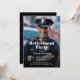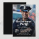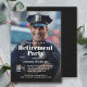 Este convite de festas de aposentadoria único para um policial ou primeiro respondente tem um modelo de foto para incluir uma foto favorita do convidado de honra. Para obter melhores resultados, use uma foto de orientação vertical. O texto modelo tem uma combinação de serif moderna e serif tipo face. Uma camada sombria sombria adiciona uma sombra sobre sua foto para que o texto em branco seja claro e legível. Personalize com sua foto e detalhes para uma celebração memorável de aposentadoria! Nota: Fotos verticais com assunto da cintura para cima ou comprimento do cheio funcionam melhor com este design de convite.
