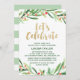 Este cartão de convite para comemoração de festas de natal Holly Wreath é perfeito para um evento ou festa de inverno. O design apresenta uma coroa verde aquarela com bagas vermelhas e uma elegante letra de brilho dourado. Nota: Este design não apresenta brilho de ouro real. É um gráfico de alta qualidade feito para parecer um brilho de ouro brilhante.
