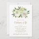 Elegante celebração floral de convite à vida com flores pintadas a aquarelas em tons neutros de marfim, branco e champanhe junto com um pouco de verde. Abaixo estão os detalhes de seu evento em tom dourado com o título do evento no script. Esta sofisticada celebração do convite à vida é excelente para celebrar a vida de uma mulher.