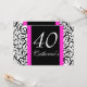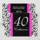 Este convite de aniversário ou ocasião formal, elegante, sofisticado e estiloso, pode ser personalizado para se adequar ao seu evento especial. DESIGN - Um redemoinho floral branco fluído, com bolinhas, forma uma ampla faixa em ambas as bordas deste convite, e é encimado por uma faixa rosa brilhante sobre um fundo preto. PERSONALIZE-O - Altere a redação, a cor / estilo e tamanho da fonte; e sinta-se à vontade para mudar a cor do fundo para qualquer uma de sua escolha. IDEAL PARA - Eventos de "festa de aniversário de 40 anos"; festas de "aniversário de 30 anos"; funções comemorativas de "aniversário de 21 anos"; reuniões de "aniversário de 35 anos"; aniversário, noivado, casamento, formatura ou qualquer celebração de marco importante. São ideais para banquetes empresariais ou corpor