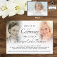 Convide amigos e família para um evento de Celebração da Vida com este elegante convite com 3 fotos do seu amado (2 na frente e uma foto de keepsasasasasasasasaes no verso) e uma elegante tipografia do roteiro de caligrafia a preto em branco. ASSISTÊNCIA: para obter ajuda com a modificação ou personalização do design, alteração de cor, transferência do design para outro produto ou você gostaria de coordenar itens, entre em contato com o designer ANTES DE ENCOMENDAR através da guia MENSAGEM de bate-papo Zazzle ou envie um email para makeitaboutyoustore@gmail.com.