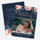 Personalize este convite para funeral/memorial elegante e moderno com a sua própria fotografia e texto para criar um envio especial para o seu amado. Um convite 'In Loving Memory' que apresenta um fundo azul marinho bonito com flores cor-de-rosa pincelado, azul-escuro, com folhagem dourada falsa como decoração. Na frente, uma foto do seu ente querido, seu nome e datas, e no verso está o local memorial, data do evento, detalhes de RSVP etc. O texto é uma combinação de script de caligrafia manuscrito e fonte serif cursiva. Todo texto é facilmente editável. Se precisar de ajuda para personalizar isto, por favor, envie-me uma mensagem usando o botão abaixo e eu ficarei feliz em ajudar. Correspondência com papelaria também está disponível na minha loja zazzle.