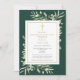 Uma elegante celebração personalizada do convite de recordação de fotos da vida, com folhagem botânica de cor aquática, em um fundo verde esmeralda. Projetado por Thisnotme©