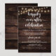 Linda madeira escura moderna rústica, luzes de corda tema cottage de fazenda, Anúncio de Casamento Intimo, cartão de convite (Celebração feliz para sempre). Isto é perfeito para o seu casamento e festa de celebração pós-casamento. Adicione seus detalhes na fonte / letra correspondente.