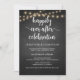 Lindo quadro de giz moderno rústico, luzes de corda tema cottage fazenda, Anúncio de Casamento de Elopamento, cartão de convite (celebração feliz para sempre). Isso é perfeito para o seu casamento e festa de celebração pós-casamento. Adicione seus detalhes na fonte / letra correspondente.