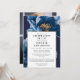 Este elegante marinho azul e dourado, celebração floral da vida e convite de lembrança pode ser personalizado com suas informações em tipografia clássica e uma foto especial no verso. Projetado por Thisnotme©