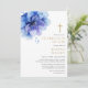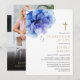 Este convite elegante de celebração cristã da vida e lembrança floral em aquarela azul pode ser personalizado com suas informações em tipografia moderna e foto no verso. Criado por Thisisnotme©