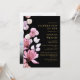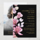 Este convite de celebração da vida e lembrança floral rosa elegante preto e dourado pode ser personalizado com suas informações em tipografia clássica e uma foto do ente querido no verso. Projetado por Thisisnotme©