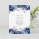 Celebração floral branca e marinho da Vida convidada com folha de falso prateado e tipografia elegante.