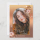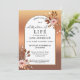 Um convite para comemoração da vida com um design de ouro rosa com flores de aquarela. Você pode substituir o espaço do centro branco por outra cor se quiser no editor avançado. No verso há espaço para uma foto personalizada.