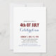 Este convite formal para celebração do dia 4 de julho é perfeito para a celebração do dia da independência. O design apresenta uma fonte elegante de caligrafia em vermelho, azul e preto.