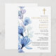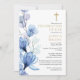 Este convite elegante de celebração cristã de vida e lembrança de floral azul pode ser personalizado com suas informações em tipografia clássica. Criado por Thisisnotme©
